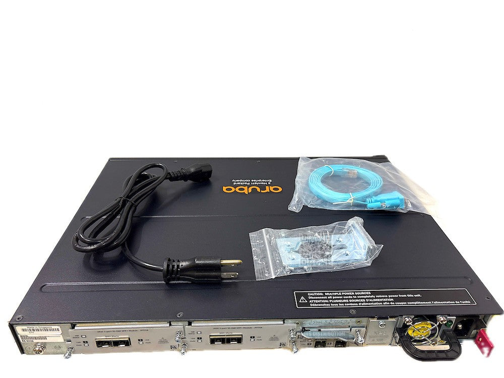 Listing includes 1x J9729A switch, 1x J9733A stacking module, 2x J9731A 2 port SFP+ modules. Professionally cleaned and tested to industry standards. Module slots may be filled with 3rd party generic blanks.