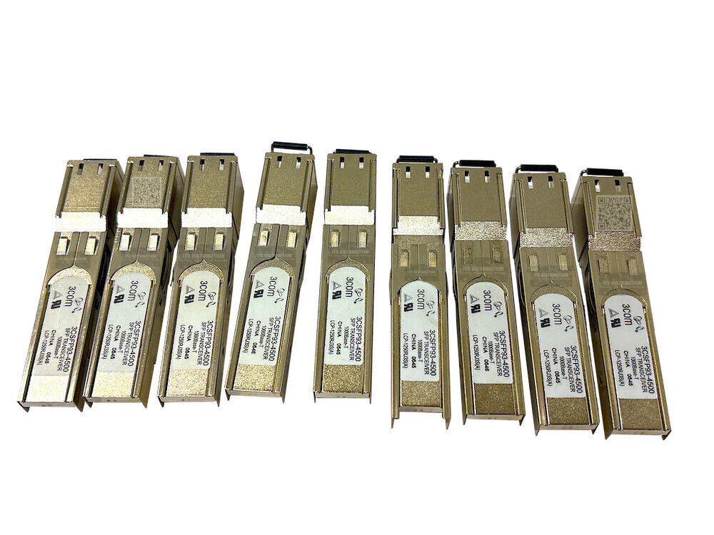Lot of 9 genuine 3COM 3CSFP93-4500 transceivers. Listing may include stock images, please contact us for confirmed photos of our inventory.
