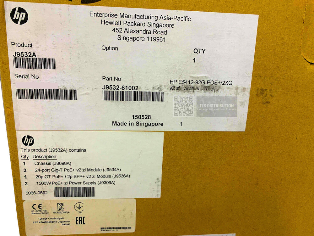 J9532A I HP E5412-92G-PoE+/2XG-SFP+ v2 zl Switch Chassis BRAND NEW