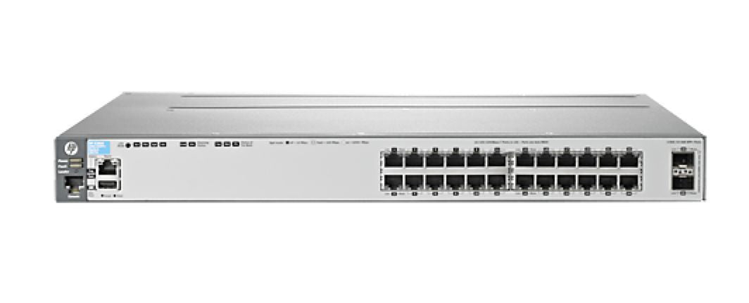 • HP 3800-24G-2SFP+ Switch: 24-port 10/100/1000 switch with 2 10-GbE SFP+ Uplinks