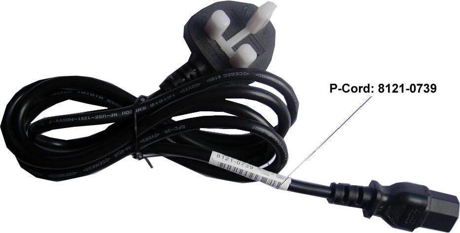 Power cord (Black) - 18 AWG, three conductor, 1.9m (6.25ft) long - Has straight (F) C13 receptacle (For 240V in Singapore, Hong Kong and the U.K.)